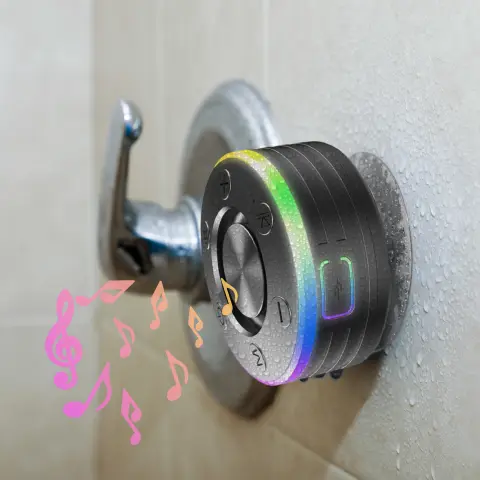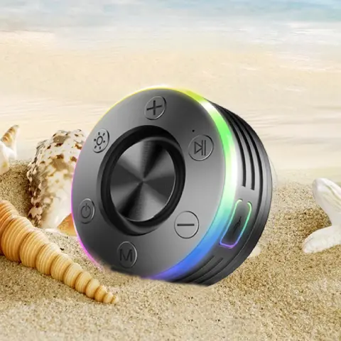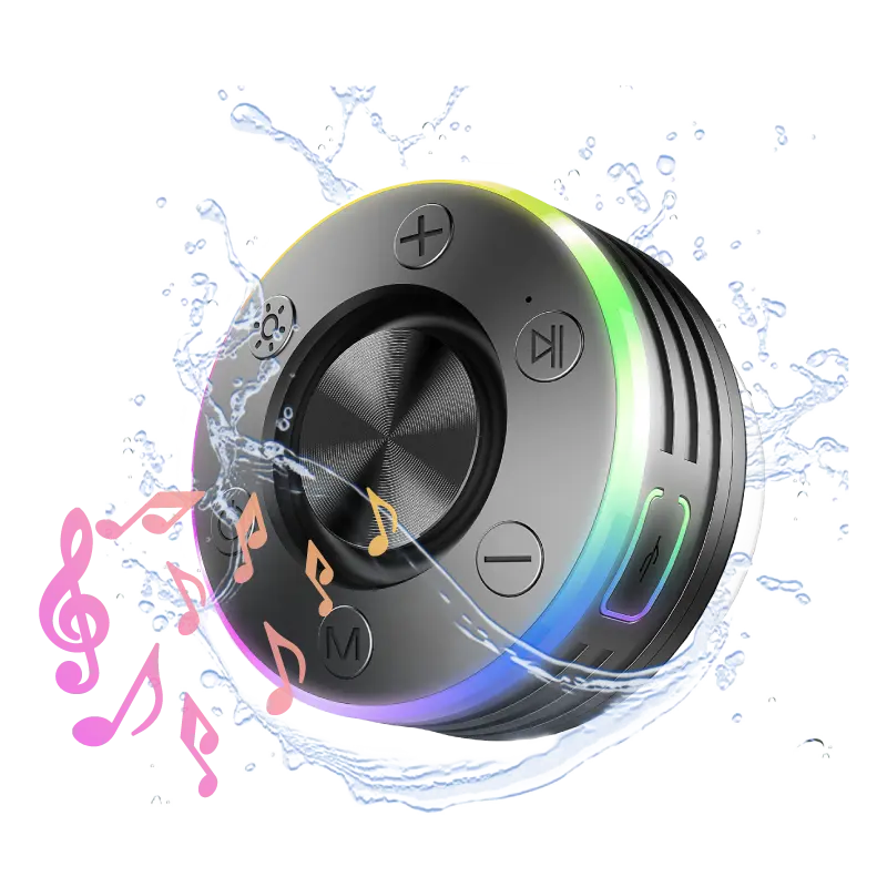 The Qinux Wavek speaker is crafted from high-quality materials and specifically designed to be WATERPROOF, making it perfect for showers, pools, or beach days. Plus, it features an RGB light system!